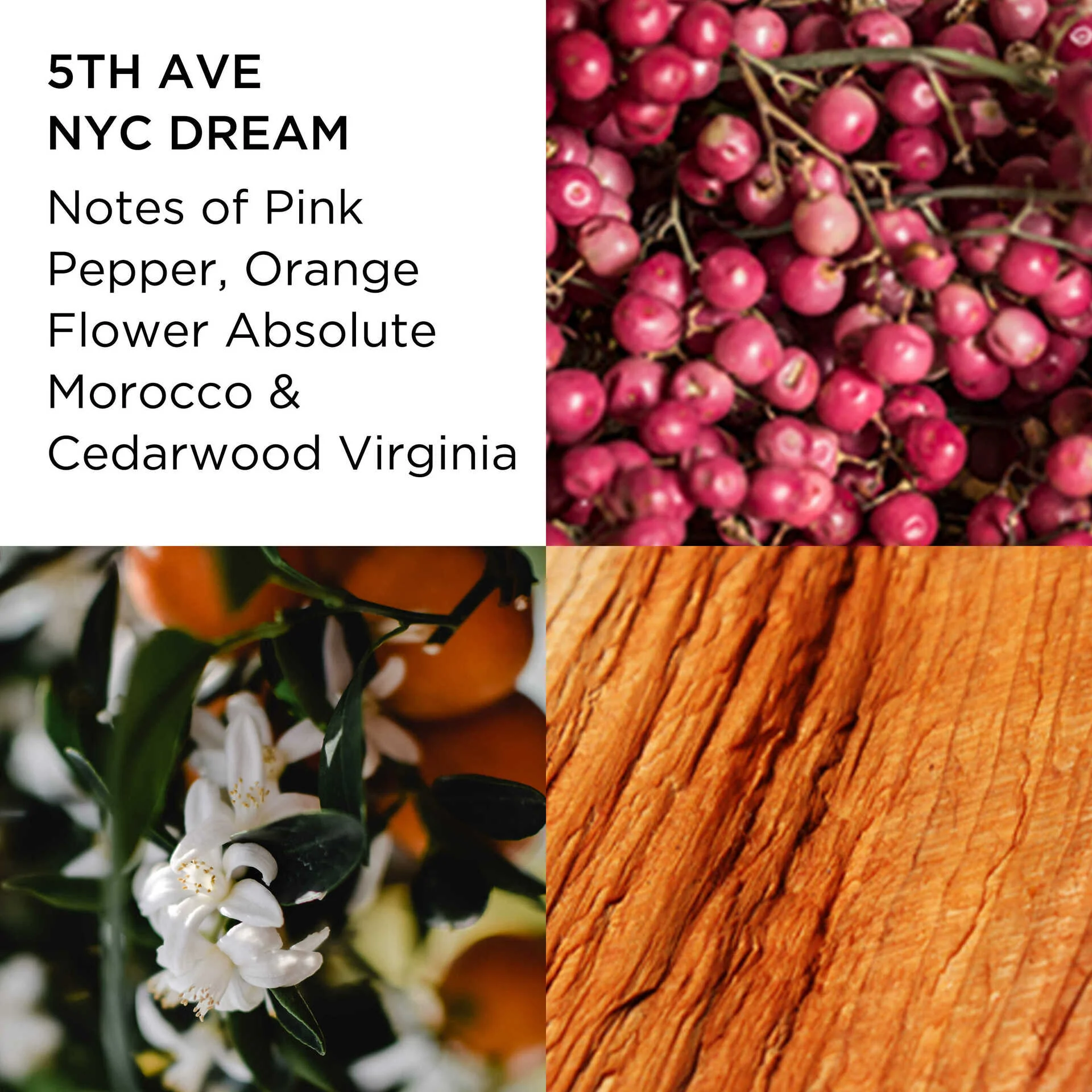 New from Elizabeth Arden is 5th avenue NYC DREAM Eau de Parfum designed for contemporary women who celebrate the magic of their femininity, pursue their dreams and embrace their freedom. Mesmerizing, lighthearted and limitless, this latest rendition of the eponymous original is a floramber floral blend of spicy pink pepper and sparkling blackcurrant bud absolute Burgundy. It seamlessly rests midway with the floral touch of orange flower absolute Morocco. The velvety creamy base of woody Cedarwood Virginia amplifies the modernity of this fragrance. Fragrance color may vary due to the use of natural ingredients.